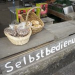 Nussbaumen ist schnell erreicht. Der kleine Weiler gefällt durch seine schön restaurierten Bauernhäuser. Beschaulich ist es hier. Mitten im Dorf lockt ein Bauern-Bio-Laden zum Einkauf. Getrocknete Apfelringe, Apfelsaft, Holunderblütensirup … Der Rucksack ist viel zu klein für alle Köstlichkeiten.