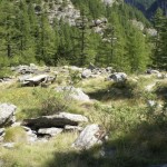Der Weg ist teilweise mit Steinplatten gepflästert – der originale Saumpfad Stockalpers. Ein altes Gemäuer taucht auf, eine weitere Ruine aus längst vergangenen Zeiten. Die Jahreszahl auf dem Türsturz: 1676. Hinter der Ruine befindet sich ein gemütlicher Rastplatz und viel Platz zum Spielen. Hoch ragen die Felswände, man fühlt sich plötzlich ganz klein.